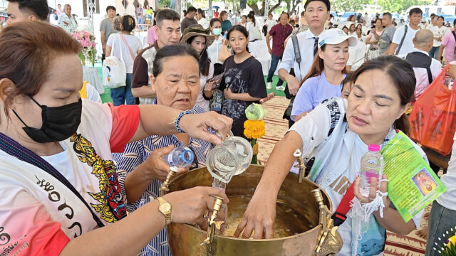 ส่องเลขเด็ด พิธีบวงสรวง ปลุกเสกท้าวเวสสุวรรณหน้าทองคำ สวดภาณยักษ์ ผู้ร่วมพิธีทั้งชายหญิงออกอาการของขึ้น ท่าทางเหมือนยักษ์ ส่งเสียงคำราม บางคนนั่งสั่น สาธุชนจากทั่วสารทิศรวมกว่า 5,000 คน เข้าร่วมพิธี