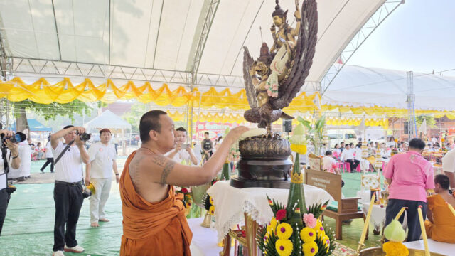 สุพรรณบุรี- สาธุชนกว่า5000แห่ร่วมพิธีบวงสรวงปลุกเสกท้าวเวสสุวรรณหน้าทองคำ