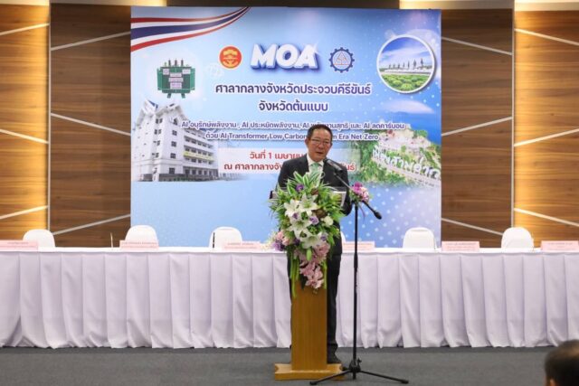 นายสิทธิชัย สวัสดิ์แสน ผู้ว่าราชการจังหวัดประจวบคีรีขันธ์ กล่าวว่า “ปัญหาการเปลี่ยนแปลงสภาพภูมิอากาศเป็นเรื่องใกล้ตัวที่ส่งผลกระทบต่อเราทุกคน จังหวัดประจวบคีรีขันธ์ในฐานะเมืองท่องเที่ยวและอุตสาหกรรมที่สำคัญ จึงมีความมุ่งมั่นที่จะยกระดับสู่การเป็น Smart City ที่ใส่ใจสิ่งแวดล้อมอย่างยั่งยืน จังหวัดประจวบคีรีขันธ์ได้เป็นจุดเริ่มต้นของนวัตกรรมด้านการอนุรักษ์พลังงานระดับประเทศ การนำเทคโนโลยี AI Transformer Low Carbon Platform มาใช้ในศูนย์ราชการ ถือเป็นการก้าวเข้าสู่ยุคพลังงานสุทธิ (Era Net Zero) ที่จะช่วยลดการปล่อยก๊าซเรือนกระจกและเป็นต้นแบบความร่วมมือระหว่างภาครัฐและเอกชนในการขับเคลื่อนเศรษฐกิจควบคู่ไปกับการรักษาสิ่งแวดล้อม”