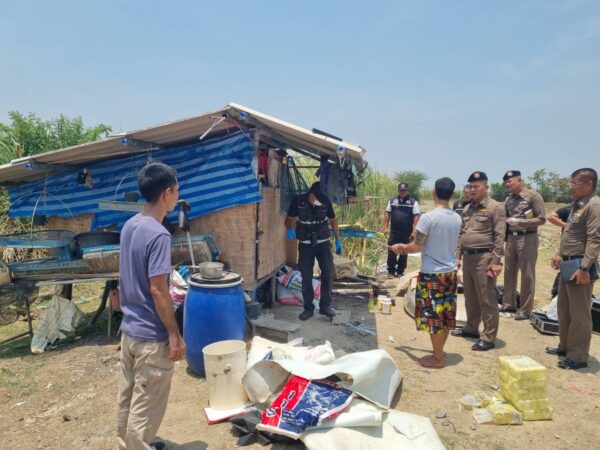 รวบน้องเขยผู้ใหญ่บ้านพร้อมยาบ้าและไอซ์ รวมกว่า 1 ล้านเม็ดมูลค่ากว่า 30 ล้านที่มีการนำมาพักไว้ที่ในกระท่อมกลางบ่อกุ้ง