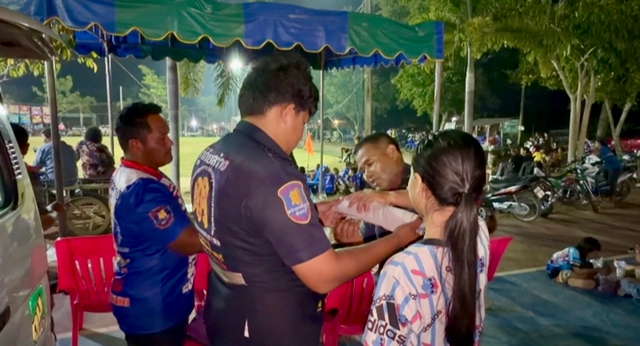 มีกองเชียร์ได้หกล้ม เกิดจากการเจ็บที่แขนขวา และด้วยทางผู้จัด การแข่งขันฟุตบอล มีการเตรียมความพร้อม ในความปลอดภัยขั้นสูง ขณะนั้นได้มีหน่วยกู้ภัยสว่างกตัญญู จุดช้างข้าม ได้รี่เข้าไปนำตัวไป ผู้ได้รับบาดเจ็บ ด้วยการประถมพยาบาลเบื้องต้น บริเวณแขนข้างขวา ซึ่งก็สร้างความตกใจให้กับกองเชียร์ ในการแข่งขันในครั้งนี้ ดีที่ได้มีการวางแผนการวางตัวหน่วยกู้ชีพกู้ภัย หน่วยปฐมพยาบาล ไว้เป็นอย่างดี