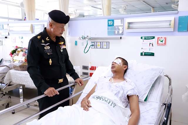 นราธิวาส-แม่ทัพภาคที่ 4 เยี่ยมกำลังพลที่ได้รับบาดเจ็บจากเหตุคนร้ายซุ่มยิง ขณะปฏิบัติหน้าที่ดูแลความปลอดภัยประชาชน ในพื้นที่ อ.จะแนะ จ.นราธิวาส