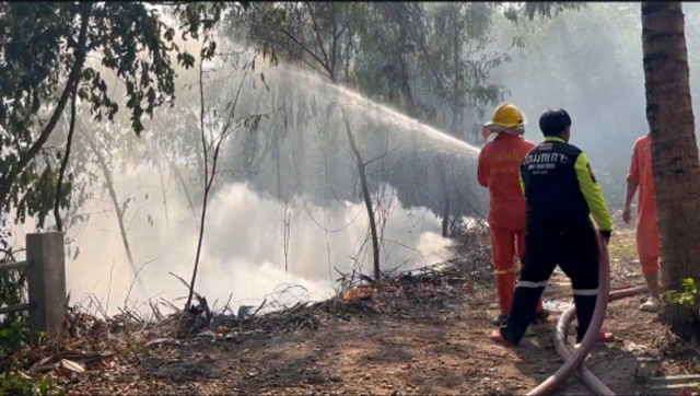 ที่เกิดเหตุพบเปลวไฟกำลังลุกไหม้เศษหญ้าแห้งในป่าละเมาะเป็นบริเวณกว้างและมีกลุ่มควันจำนวนมากลอยปกคลุมไปทั่วบริเวณ ท่ามกลางสภาพอากาศที่มีลมพัดแรงตลอดเวลา ชาวบ้านที่มีบ้านเรือใกล้เคียง และเจ้าหน้าที่ตำรวจพร้อมเจ้าหน้าที่เทศบาลต่างช่วยกันดับไฟอย่างโกลาหล