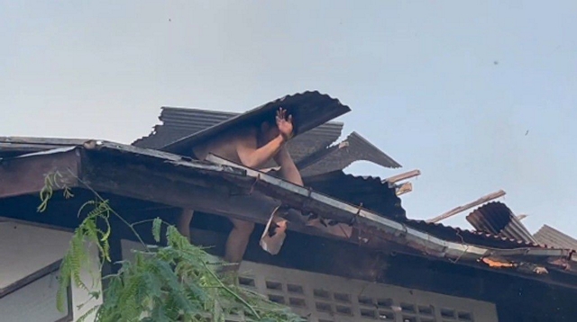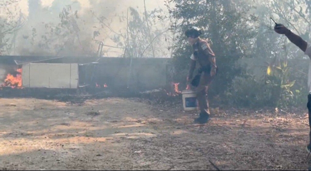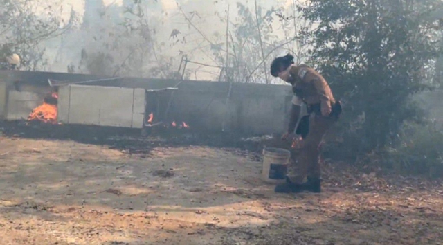 ที่เกิดเหตุพบเปลวไฟกำลังลุกไหม้เศษหญ้าแห้งในป่าละเมาะเป็นบริเวณกว้างและมีกลุ่มควันจำนวนมากลอยปกคลุมไปทั่วบริเวณ ท่ามกลางสภาพอากาศที่มีลมพัดแรงตลอดเวลา ชาวบ้านที่มีบ้านเรือใกล้เคียง และเจ้าหน้าที่ตำรวจพร้อมเจ้าหน้าที่เทศบาลต่างช่วยกันดับไฟอย่างโกลาหล
