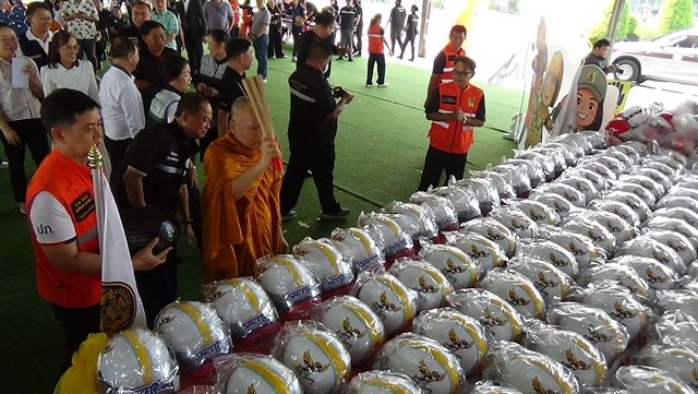 อ่างทอง-อาจารย์แก้ว วัดตะโก ปลุกเสกหมวกกันน็อกรุ่น “ฅนหัวแข็ง” 3,391 ใบ