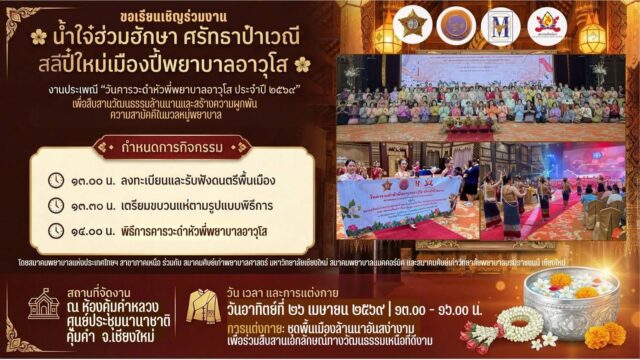 เชิญร่วมงาน “น้ำใจ๋ฮ่วมฮักษา ศรัทธาป๋าเวณี” สืบสานปี๋ใหม่เมืองพี่พยาบาลอาวุโส