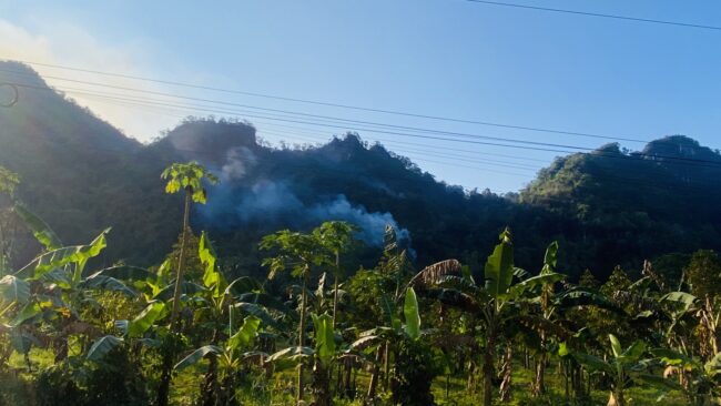 แม้จะมีการสนับสนุนรถบรรทุกน้ำเข้าดับไฟ แต่ด้วยสภาพพื้นที่เป็นภูเขาสูงชัน ทำให้ไม่สามารถเข้าถึงจุดเกิดเหตุได้ ไฟยังคงลุกไหม้ต่อเนื่องบนยอดเขา เจ้าหน้าที่จึงต้องปรับแผน สั่งการให้ชาวสวนในพื้นที่เร่งทำ “แนวกันไฟ” ป้องกันไม่ให้เปลวเพลิงลุกลามเข้าสวนและพื้นที่เกษตร