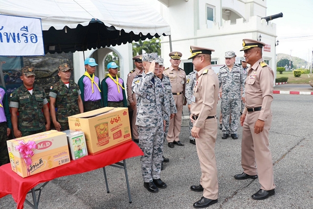 จากนั้น รองผู้บัญชาการทัพเรือภาคที่ 1 และคณะ ได้เดินทางตรวจเยี่ยมกำลังพลปฏิบัติหน้าที่จุดบริการประชาชนของศูนย์บรรเทาสาธารณภัยทัพเรือภาคที่ 1 ในพื้นที่สัตหีบ จังหวัดชลบุรี พร้อมกับมอบสิ่งของอุปโภคบริโภคและเครื่องดื่ม จำนวน 5 จุดบริการฯ ได้แก่