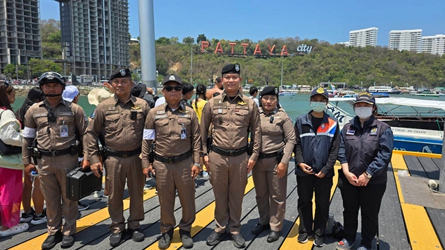 ​ เมืองพัทยา (13 เมษายน 2569) – พ.ต.ท.ปราบดา สุขสุนทรีย์ สารวัตรใหญ่สถานีตำรวจท่องเที่ยว 4 กองกำกับการ 2 พร้อมด้วย ว่าที่ พ.ต.ท.อภิชาติ จารุรักษ์ สารวัตรฯ นำกำลังเจ้าหน้าที่ตำรวจท่องเที่ยว สนธิกำลังร่วมกับกรมเจ้าท่าจังหวัดชลบุรี และตำรวจ สภ.เมืองพัทยา ลงพื้นที่ท่าเทียบเรือแหลมบาลีฮาย เพื่อยกระดับมาตรการความปลอดภัยทางน้ำในช่วงเทศกาลสงกรานต์