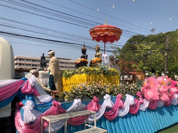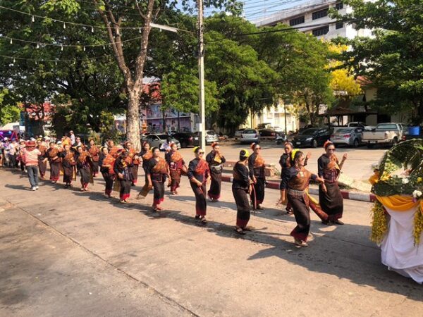 จากนั้นมีขบวนแห่หลวงพ่อองค์ดำชุ่มเย็น และพระพุทธสิหิงค์ และขบวนแห่สงกรานต์ไปตามถนนสายต่างๆ เพื่อให้ประชาชนได้ร่วมสรงน้ำตลอดเส้นทาง ก่อนที่จะเข้าสักการะและสรงน้ำอนุสาวรีย์พระยาชัยสุนทร เจ้าเมืองคนแรก สักการะสรงน้ำหอเจ้าบ้าน ศาลหลักเมือง ศาลเจ้าโสมพะมิตร และเข้าสู่ถนนสงกรานต์เฟสติว้าว ข้าวก่ำมหาสนุก