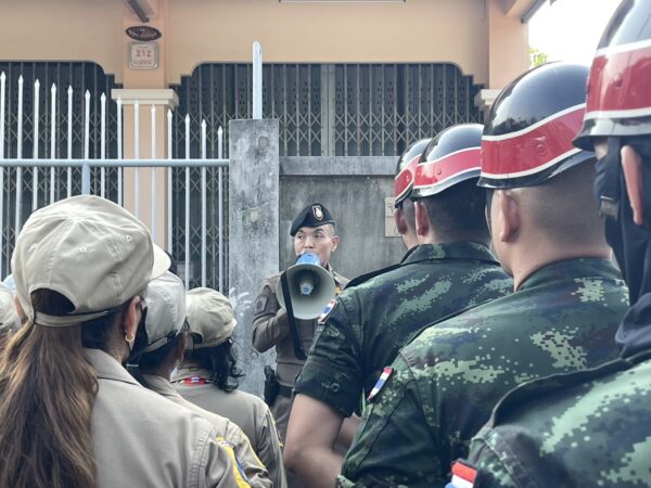 พ.ต.ท.โย บัวบาน สวป.สภ.เมืองเพชรบุรี พ.ต.ท.ศักดิ์ระพี พูลพิพัฒน์ สว.จร สภ.เมืองเพชรบุรี พ.ต.ท.กดชา บรรเทิงจิต สวป.สภ.เมืองเพชรบุรี ปล่อยแถวข้าราชการตำรวจ สภ.เมืองเพชรบุรี บูรณาการร่วม เจ้าหน้าที่ฝ่ายปกครองจังหวัดเพชรบุรี เจ้าหน้าที่เทศบาลเมืองเพชรบุรี เจ้าหน้าที่ทหาร มทบ.15 ร่วมกันออกรักษาความปลอดภัยและอำนวยความสะดวกด้านการจราจร บริเวณการจัดงานสงกรานต์ถนนภูมิรักษ์ (ถนนบุบผา) อ.เมืองเพชรบุรี ตรวจค้นอาวุธ ก่อนเข้างาน มั่นใจความปลอดภัยนักท่องเที่ยว