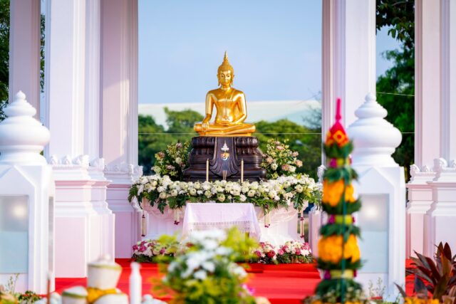 พิธีดังกล่าวนี้ สมเด็จพระมหาวีรวงศ์ เลขานุการสมเด็จพระสังฆราช เป็นประธานฝ่ายสงฆ์ ประกอบพิธีสมโภชและอัญเชิญพระพุทธรูปขึ้นประดิษฐาน ซึ่งอาจารย์ฉัตรชัย ปิ่นเงิน หัวหน้างานโหรพราหมณ์ กองพระราชพิธี สำนักพระราชวัง ร่วมประกอบพิธีบวงสรวงตามราชประเพณีอย่างครบถ้วนสมบูรณ์