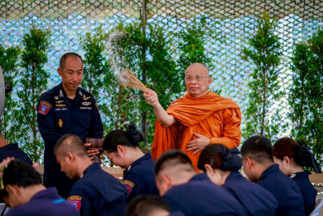 กระทั่งเวลา 09.19 น. ซึ่งเป็นฤกษ์มงคล (ราชาฤกษ์) ประธานในพิธีพร้อมคณะผู้บังคับบัญชา ได้ร่วมกันอัญเชิญพระพุทธรูป “พระพุทธกรุณาประชานาถ” ขึ้นประดิษฐานบนแท่นบูชาหลัก โดยมีพระสงฆ์เจริญชัยมงคลคาถา (บทชยันโต) เสริมความเป็นสิริมงคล จากนั้นเวลา 09.30 น. ได้ถวายเครื่องไทยธรรมและผ้าไตรแด่พระสงฆ์ และในเวลา 09.45 น. พระสงฆ์อนุโมทนา ประธานในพิธีกรวดน้ำ รับพร และรับการประพรมน้ำพระพุทธมนต์ ก่อนเสร็จสิ้นพิธีในเวลา 10.00 น. พร้อมถ่ายภาพที่ระลึกร่วมกัน