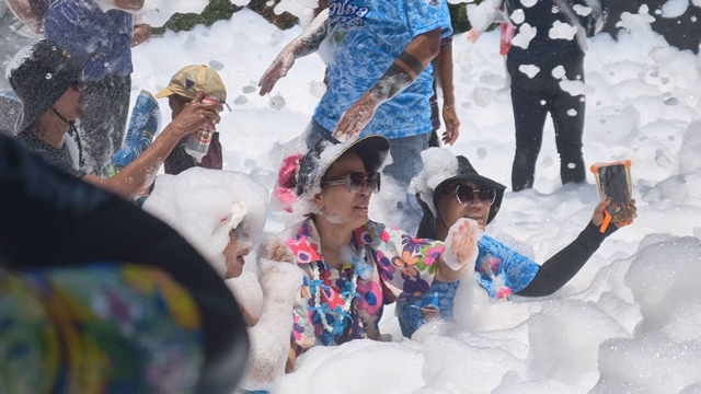 ชลบุรี-ชาวสัตหีบ พลูตาหลวง ศาลาแดง กม.10 จัดใหญ่วันไหลสงกรานต์ แห่ขบวน-ปาร์ตี้โฟม สร้างความสามัคคีในชุมชน