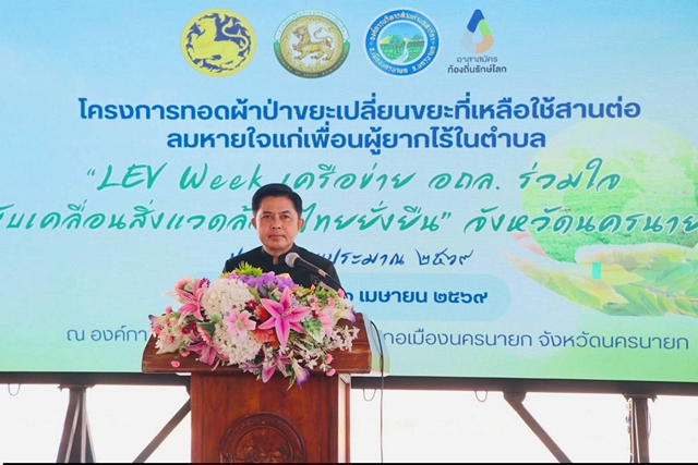 จังหวัดนครนายก ร่วมกับ องค์การบริหารส่วนตำบลสาริกา จัดกิจกรรม “ทอดผ้าป่าขยะ” ภายใต้กิจกรรมสัปดาห์ขับเคลื่อนเครือข่ายอาสาสมัครท้องถิ่นรักษ์โลก จังหวัดนครนายก “LEV Week เครือข่าย อถล. ร่วมใจ ขับเคลื่อนสิ่งแวดล้อมไทยยั่งยืน” พร้อมทั้งบูรณาการกิจกรรมธนาคารขยะ เพื่อมุ่งลดปริมาณขยะตั้งแต่ต้นทางก่อนเข้าสู่กระบวนการกำจัด