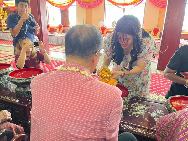 ทั้งนี้เนื่องในโอกาสส่งท้ายเทศกาลวันสงกรานต์ ครอบครัว “พาณิชย์พิศาล” โดย นายอัครนันท์ นางธัญยธรณ์ พาณิชย์พิศาล ดร.ปิยนุช พาณิชย์พิศาล นายธนิตพงษ์ นางทิพย์ประภา วรัณวงศ์เจริญ และครอบครัวกระแชงขาว เปิดโอกาสให้คณะเจ้าหน้าที่ชมรมโฮปฯ คณะกรรมการวัด รวมถึงสื่อมวลชน ได้รดน้ำดำหัวขอพรเนื่องในเทศกาลวันสงกรานต์