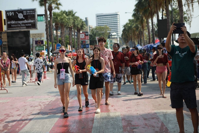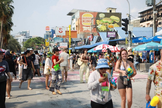 เมื่อวันที่ 19 เมษายน 2569 ซึ่งเป็นวันไหลของเมืองพัทยา จังหวัดชลบุรี บรรยากาศการเล่นน้ำสงกรานต์เป็นไปอย่างคึกคัก โดยมีนักท่องเที่ยวทั้งชาวไทยและต่างชาติเดินทางเข้าพื้นที่อย่างต่อเนื่องตั้งแต่ช่วงเช้า ส่งผลให้ถนนสายหลัก อาทิ ถนนสุขุมวิท พัทยาใต้ พัทยากลาง และพัทยาเหนือ มีปริมาณรถหนาแน่น ขณะที่ร้านค้าและสถานประกอบการต่างร่วมกิจกรรมสาดน้ำสร้างสีสันตลอดแนวเมือง