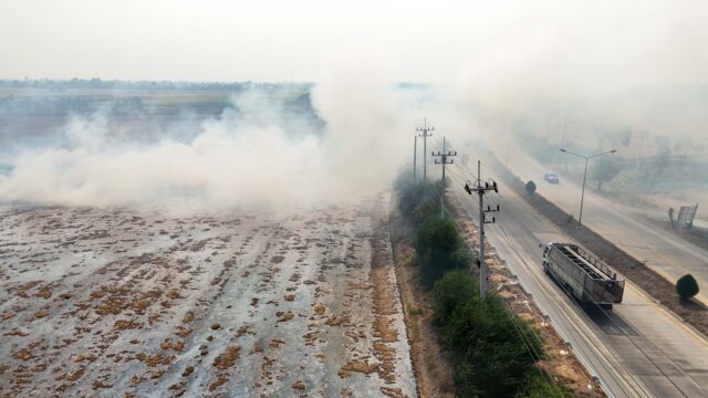 ขณะเดียวกันในพื้นที่จังหวัดสุพรรณบุรี ยังมีเกษตรกรลักลอบเผาตอซังและฟางข้าวในนา กันจำนวนมากทุกวัน แบบไม่เกรงกลัวกฎหมาย และไม่ห่วงความปลอดภัยของคนอื่น เนื่องจากนาข้าวที่เกษตรกรเผาฟางมีทั้งกลางทุ่งนาและที่อยู่ใกล้ถนนซึ่งมีประชาชนใช้รถสัญจร ตลอดเวลา ทำให้มีกลุ่มหมอกควันไฟ ลอยฟุ้งกระจายครอบคลุมทั่วพื้นที่เกือบ 10 อำเภอ สร้างความเดือดร้อน กันทั่ว