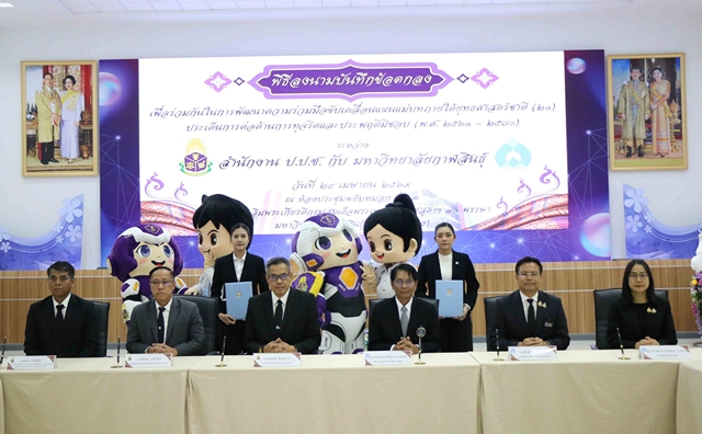 เมื่อวันที่ 24 เมษายน 2569 ที่ห้องพยับหมอก ชั้น 3 อาคารเฉลิมพระเกียรติกรมสมเด็จพระเทพรัตนราชสุดาฯ 70 พรรษา มหาวิทยาลัยกาฬสินธุ์ พื้นที่ในเมือง นายสุรพงษ์ อินทรถาวร เลขาธิการคณะกรรมการ ป.ป.ช. รองศาสตราจารย์ ดร.สุพรรณ สุดสนธิ์ อธิการบดีมหาวิทยาลัยกาฬสินธุ์ ร่วมกันลงนามในบันทึกข้อตกลง เพื่อร่วมกันในการพัฒนาความร่วมมือขับเคลื่อนแผนแม่บทภายใต้ยุทธศาสตร์ชาติ (21) ประเด็น การต่อต้านการทุจริตและประพฤติมิชอบ (พ.ศ.2561-2580) โดยการนำกฎหมาย ป.ป.ช. บรรจุเข้าในหลักสูตรการศึกษาของสาขาวิชา นิติศาสตร์
