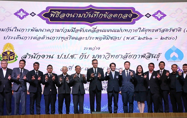 การแก้ไขปัญหาดังกล่าวจึงต้องอาศัยความร่วมมืออย่างบูรณาการจากทุกภาคส่วน ความร่วมมือระหว่างสำนักงาน ป.ป.ช. ประจำจังหวัดกาฬสินธุ์ และมหาวิทยาลัยกาฬสินธุ์ในครั้งนี้ จะ เป็นกลไกสำคัญในการส่งเสริมวัฒนธรรมความซื่อสัตย์ สุจริตในระดับพื้นที่ ผ่านการบูรณาการองค์ความรู้ทาง วิชาการ การวิจัย และการพัฒนาหลักสูตรที่เกี่ยวข้องกับการต่อต้านการทุจริต รวมถึงการสร้างเครือข่าย นักศึกษาและบุคลากรที่มีจิตสำนึกต่อต้านการทุจริต ให้เป็นพลังสำคัญในการพัฒนา จ.กาฬสินธุ์และ ภูมิภาคอย่างยั่งยืนต่อไป