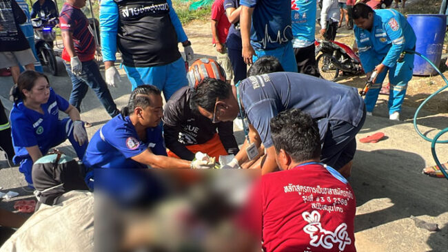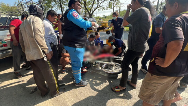 นาทีชีวิตกลางถนนเพชรเกษม! หนุ่มขี่จักรยานยนต์พุ่งชนท้ายรถกระบะอย่างจัง จนชิ้นส่วนโช้กล้อหน้าทะลุแทงเข้าต้นขาด้านใน ติดคารถไม่สามารถดึงออกได้ เจ้าหน้าที่ต้องเร่งใช้เครื่องตัดถ่างนำร่างออก ท่ามกลางสถานการณ์ตึงเครียด