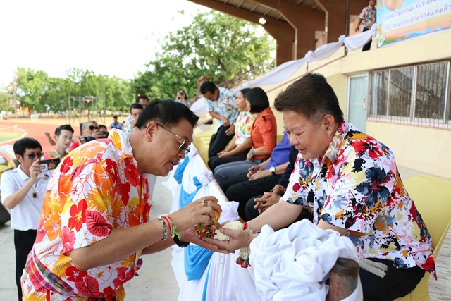 กาฬสินธุ์ สันนิบาตเทศบาลกาฬสินธุ์จัดกิจกรรมรดน้ำขอพรผู้ใหญ่-แข่งกีฬาเชื่อมความสัมพันธ์