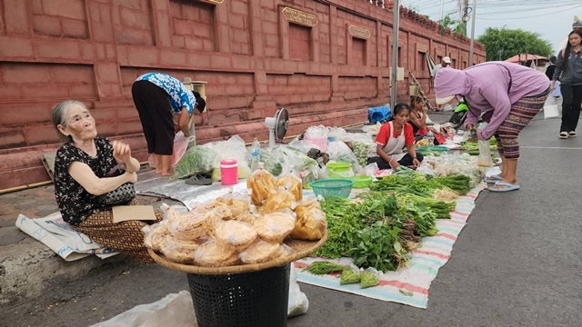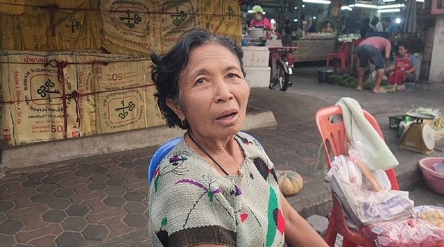 นางยศ ราชประโคน อายุ 71 ปี แม่ค้าขายผักสด อยู่บ้านเขลที่ 396 หมู่ 3 ต.ประโคนชัย อ.ประโคนชัย จ.บุรีรัมย์ เล่าว่าตนจะออกมาขายผักสดทุกวันโดยจะเอาผักที่เก็บริมรั้วที่บ้านบ้าง รับจากชาวบ้านมาขายบ้าง